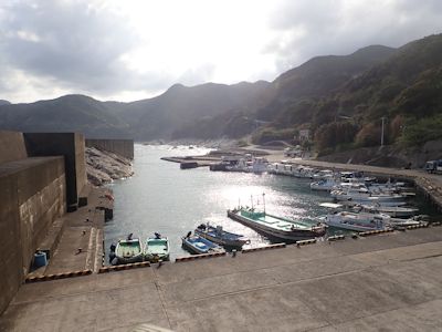 船間漁港。この北東側に磯場があるのだが、なかなか海まで出るのが