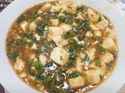 丸美屋麻婆豆腐の素辛口を使った、ニラネギたっぷり麻婆豆腐