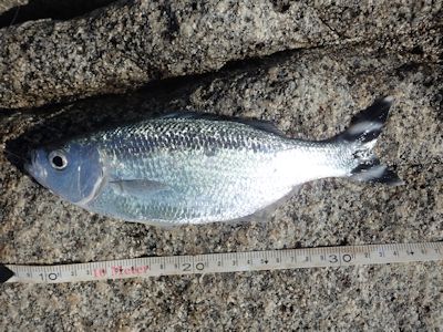 釣果はヘダイ1、ギンユゴイ3、ベラ2、コッパメジナ2、オヤビッチャ1、イスズミ1。