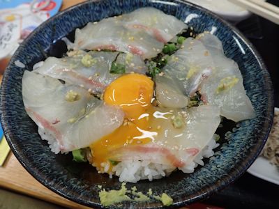 市場食堂の鯛めし丼。美味い(愛媛県愛南町)