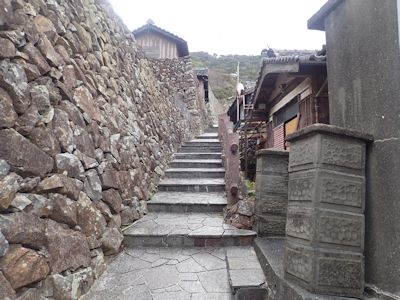 石段と石垣の母島の街(高知県宿毛市沖の島)