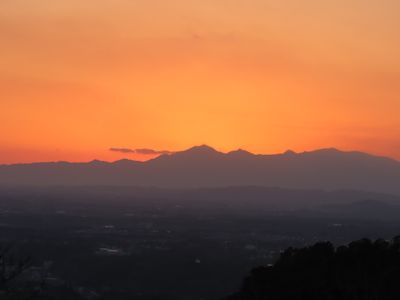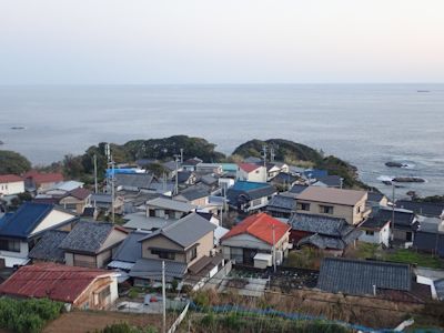 夕刻、足摺岬の街を見下ろす。ここの人々は、果てのない太平洋を