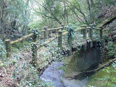 橋が蔦に絡まれて、廃墟のようになっている。渡る面も草ぼうぼう。