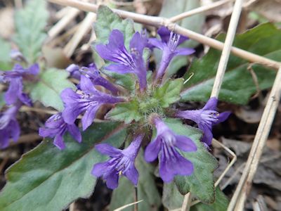 キランソウの紫色の花が咲いている (宮崎県串間市)