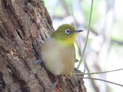 樹の幹に止まるメジロ (高知県土佐清水市)