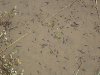 これらカエルの卵が孵化し、いまや水の入った田にはオタマジャクシがうじゃうじゃいる。