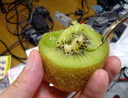 実は最近キウイのテレビCMでタレントがおいしそうにそうやって食べているのを見て、目からうろこが落ちたのである。