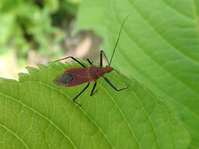 紫色のシジミチョウが葉に止まり、シャッターを押す瞬間に飛び立つ。呆然。