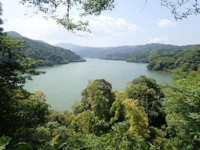 高隈ふれあいパークで、ダム湖(大隅湖)を見ながら生き物観察。