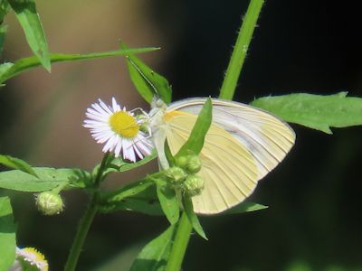 モンシロチョウがハルジオン(多分)で吸蜜している。