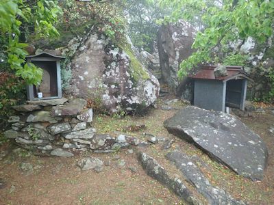 山頂は修験者の聖地だったこともあり、様々な祠が石の間に設置されていて、結構不思議な景観を呈している。