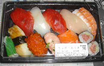 スーパーでもそうだが、例えば閉店間際に同じ半額になるにしても、158円が半額になるより、400円とか800円が半額になるほうがお買い得感がだいぶ違うと感じるのは僕だけだろうか。すしの740円が370円になるということにすっかり魅了されて、すぐに買ってしまった(写真参照)。