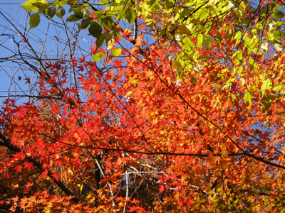 確かに紅葉は見事である。真っ赤な紅葉の葉を拾い上げると、この世のものとは思えない鮮やかすぎる発色である。