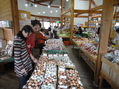 この後、道の駅「ふれあいパークきみつ」へ。ここでは地元の産物やお土産が所狭しと並んでいる。この辺りでは卵が有名なようで、ずらりと卵パックが並んでいる。なかでも「アロウカナ」という鳥の青い卵が1パック10個入り400円〜500円くらいの高値で売られている。おしゃべり好きの地元のおじさんが教えてくれる。