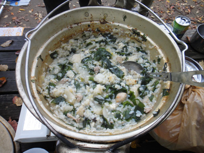 何度も鍋をお代わりし、腹は一杯になった。それでも飯ごうの米はみんなで1つ分とちょっとしか食べ切れなかった。残った米は明日の朝に雑炊で使うことにする。