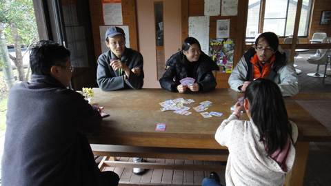 結局、管理棟のテーブルで、みんなでトランプをすることにした(笑)。