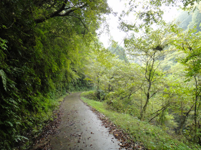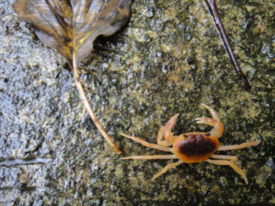 林道を走って黒滝へ急ぐ。一人で時間をかけて結局沢登りを断念したので、みんなが黒滝に着いてから結構時間がたっている。林道にオレンジ色をした沢蟹が歩いている。