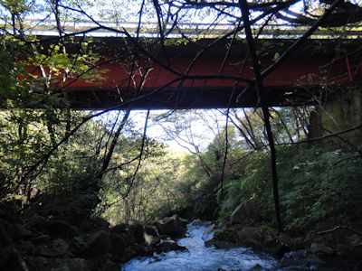 9時発のバスに乗り幕山公園に9:15着。ここから歩いて入渓点へ。先回は間違えたのだが、取水場手前のけもの道に入り、山の中をどんどん歩く。山道から白銀林道へ出る。しばらく歩くと入渓点の白銀橋。幕山公園から45分ほどで到着。午前10時。