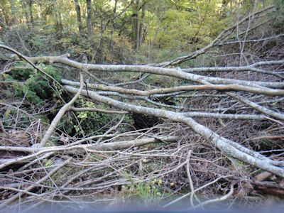 しばらくすると倒木が目立ってくる。突破するのに難渋する。