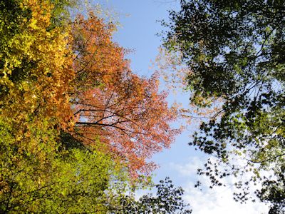 見上げた木々は紅葉し、冬枯れている。これが夏なら、まぶしいくらいの緑が輝く。