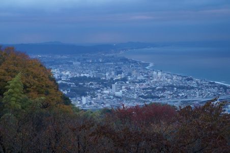 天守最上階からは小田原の街が一望できる。北には丹沢山塊、南から東方面には相模湾が広がる。