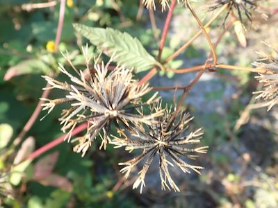 針状の種子が球状に集まっている。この横を通り過ぎると、