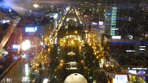 札幌テレビ塔から見下ろす、雨の大通公園