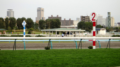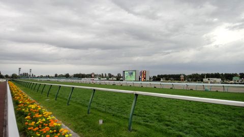 札幌競馬場は、札幌中心部からそれほど離れていない場所にある、昔ながらの古い競馬場だ。JRAの他場がほとんど新装開店しているのに比べ、ここは時が止まったような趣だ。コンクリートむき出しの通路に、馬券売り場も自動券売機のほかに昔ながらの窓口が多数ある。スタンド建物を本馬場と逆側から見ると、古い学校か庁舎みたいで、ギャンブルの歴史を感じさせる。本馬場の向こうには札幌のビルが見渡せる。