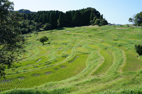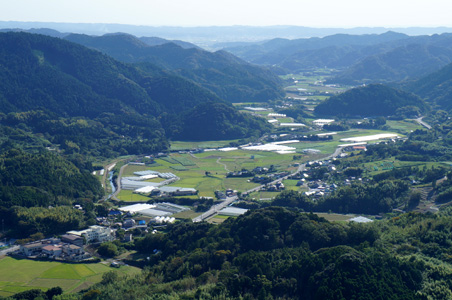 県道258号を東へ。空は青く、山深い中に集落が点在する増間地区は、癒される風景だ。