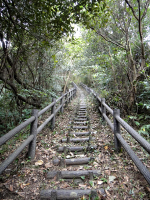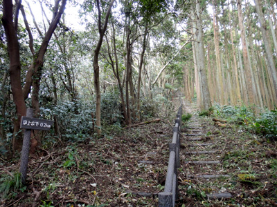 大日山登山道。擬木の急階段 |