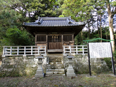 増間林道入口に到着。林道を上がっていくとすぐに日枝神社がある。車を林道に置き去りにして神社にちょっと立ち寄る。昭和32年に増間地区15社が合祀されてできた地区の鎮守で、祭神は大山咋命(おおやまぐいのみこと)。
