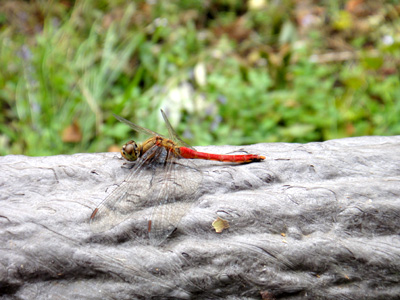 山頂へ再び階段を登っていく。夏が過ぎめっきり少なくなった飛ぶ昆虫だが、アキアカネがフラリフラリと飛んでいる。そういえばさっきオニヤンマがいたけど、南房総はちょっと気温が高いからトンボの活動期間も長いのだろうか。