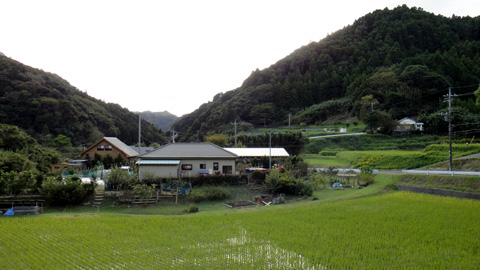 長沢の集落。田植えが終わっている。二期作?