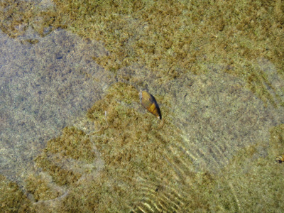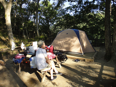 靴を履き替え、濡れた長袖シャツを脱ぎ、Tシャツに着替える。下は水着のまま。さっきまでは青空が広がるいい天気だったのだが、徐々に雲が広がってきたので、ちょっと肌寒い。