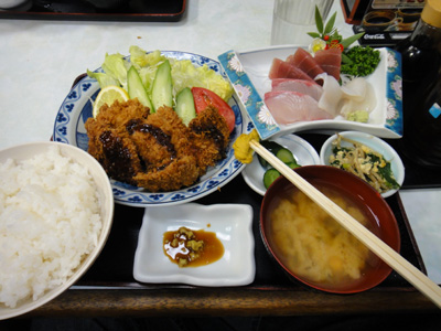 18:30、店に入る。今日の混雑はそれほどでもない。すぐに座れた。みんな、前回の反省から、「海鮮天丼」は誰も頼まない。そしてみんなで違うものを注文する。始めにほなみちゃんのさば味噌煮定食が出てきたのが45分後の19:15。そして僕のマグロカツ定食刺身つき、石坂の天丼&マグロ丼セット、コンスケのいわし天ぷら定食、裕助のアジフライ定食刺身つきが19:30までに出揃う。やはりすべて出てくるまでに1時間かかるか。