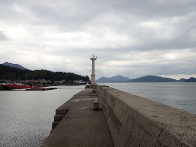 島南部の沖浦港は「釣り禁止」の表示。さらに進んで明石港で釣ることにする。
