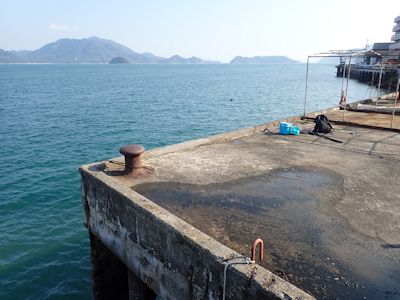 基本、島の周りは護岸されているので、この島には磯があまりない。となるとやはり堤防や護岸からの釣りが主体となるわけだが、ほとんどの堤防では水深はあるものの、釣果に乏しい。小物しか釣れない。