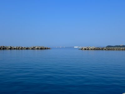 港から、カヌーに釣道具を乗せた釣り人が出航していった。沖テトラの裏側に周るのまで見えたが、どこで釣るのだろう?