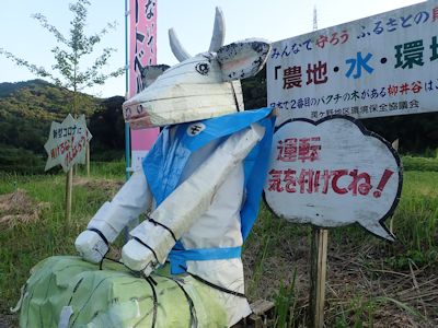 柳井谷に鎮座する交通安全の牛武士(鹿児島県志布志市) |