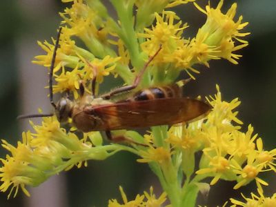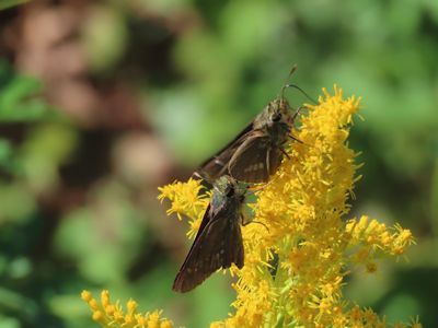 セイタカアワダチソウに2羽のイチモンジセセリ(多分)が止まっている