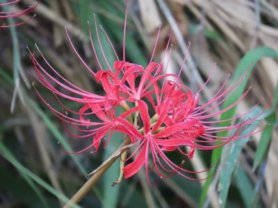 彼岸花はよく見ると、6枚の花弁の中心から線状のおしべとめしべが