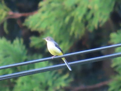 キセキレイが川に降りていて、私が近づくと飛び立って電線に止まった。