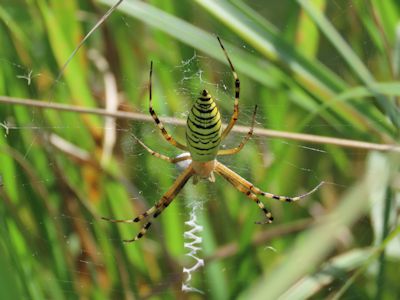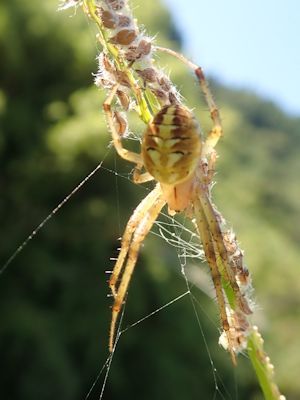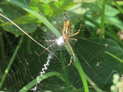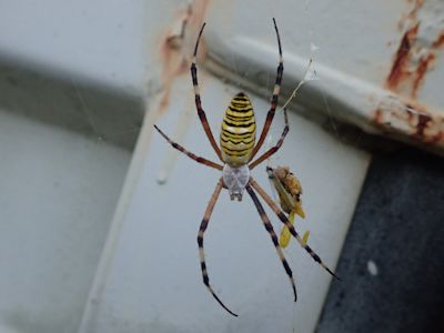 ナガコガネグモ。下のほうにジグザグの白帯を作っている