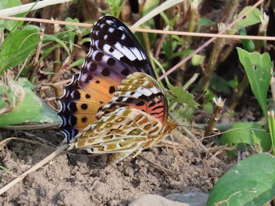 タテハチョウは小さくなったものの、まだ翅の模様がよく見える状態で放置されている。食べ終わったのか、後でまだ食べるのか。