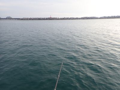 堤防だが水深はおそらく10mくらいある。潮の流れは弱いので