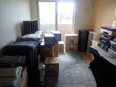 前者は破損が分からないのだが、後者は明らかに筐体が割れて壊れている。サカイ引越センターの梱包の不備、もしくは運搬中の何かしらの衝撃がかかったものと思う。これらは普通のダンボールで運ぶのはマズいと思ったので、引越し日当日はそのまま外に出しておいて、業者の人に梱包してもらったのだが、よく見ると、何台かいっしょにダンボールに入れ、緩衝材も何も入れていない。