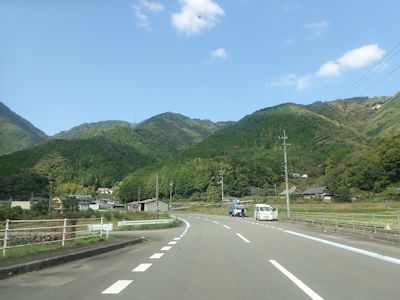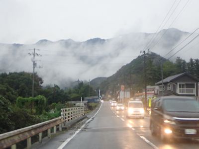 国道439号をチムジルバンへ向かう。北川川沿いの道は、山奥と
