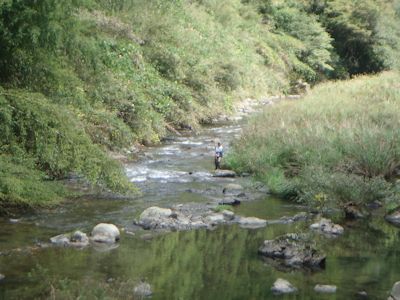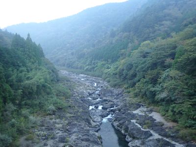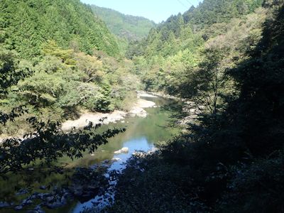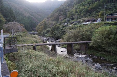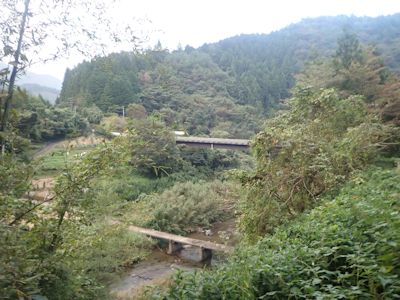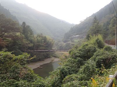 県道2号に沿って、四万川川(しまがわがわ)が流れている。宮野々沈下橋がある。この沈下橋を見下ろす橋の上から、結構大きな魚がいるのが見える。アメゴ(アマゴ)だろうか。