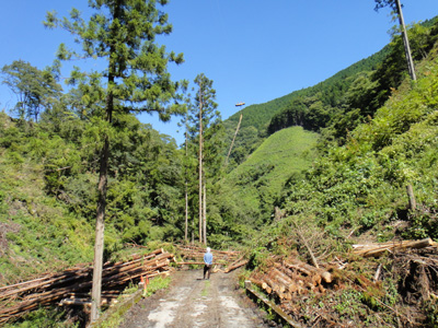 「だめだ、林道もないし、巻いて沢に降りるのも大変だ。急斜面で危ない。」