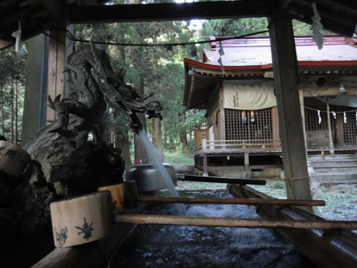 軍刀利神社本社に到着。夕方の神社に人気はない。手水所で龍の口から勢いよく水が吐き出されている。人知れず龍は水を吐き続ける。誰も見ていない。それにしてもこんなに勢いよく大量の水を流し続ける必要があるのだろうか?湧き水だから水量をコントロールできないのだろうか。